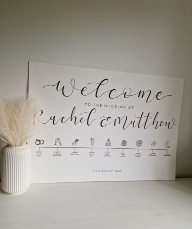 Bespoke and beautiful wedding, event and business signage. From welcome signs and seating plans, to order of the day boards and smaller signage. Each piece is carefully hand designed and personalised to suit your vision