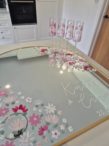 I work on a variety of materials - from mirrors to wood, acrylic and glass - the possibilities are truly endless. I can match any colours to your theme so, every design can be tailored perfectly